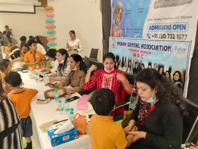 मिर्जापुर, 12 अप्रैल 2026 शहर के सेफ्टन मिल चौराहा शीतला माता मंदिर के पास स्थित फर्स्टक्राई इंटेलिटॉट्स प्रीस्कूल में शनिवार को डेंटल हेल्थ को लेकर विशेष जागरूकता कार्यक्रम आयोजित किया गया। इंडियन डेंटल एसोसिएशन (IDA) मिर्जापुर की वूमेन डेंटल काउंसिल के सहयोग से आयोजित इस डेंटल कैम्प में बच्चों को दांतों की सही देखभाल के प्रति जागरूक किया गया।