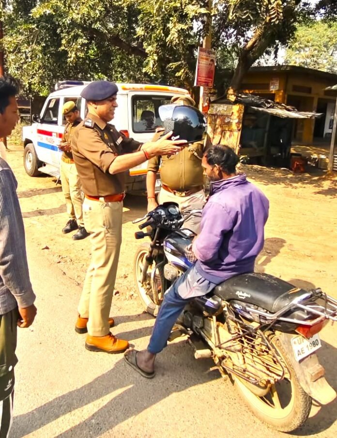 क्षेत्रांतर्गत ददरा ब्लाक तिराहा पर आमजन और मोटर साइकिल सवार व्यक्तियों को यातायात नियमों को पालन करने हेतु जागरूक किया गया तथा वाहन चलाते समेय हेलमेट पहनने व चार पहिया वाहन चलाते समय सीट बेल्ट लगाने की हिदायत भी दी गयी,