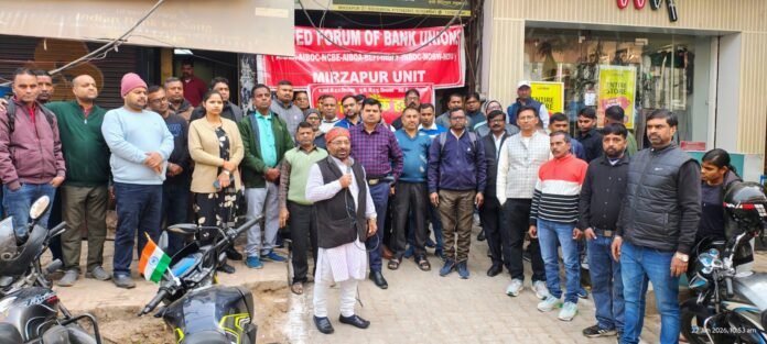 5 दिवसीय बैंकिंग व्यवस्था की मांग पर मीरजापुर में ऐतिहासिक बैंक हड़ताल, 275 शाखाओं पर ताला, ₹500 करोड़ से अधिक का कामकाज प्रभावित