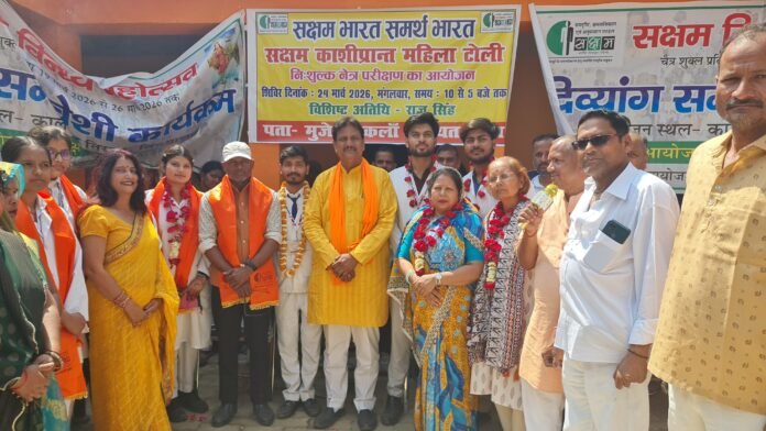 मिर्जापुर। सक्षम काशी प्रांत महिला टोली द्वारा मंगलवार को मुजेहरा कला पंचायत भवन में आयोजित निःशुल्क नेत्र परीक्षण शिविर में बड़ी संख्या में लोगों ने भाग लिया। “सक्षम भारत, समर्पित भारत” के उद्देश्य के तहत आयोजित इस शिविर में करीब 600 मरीजों का नेत्र परीक्षण किया गया, जिसमें लगभग 400 जरूरतमंदों को निःशुल्क चश्मा वितरित किया गया, जबकि अन्य मरीजों को दवाइयां उपलब्ध कराई गईं।